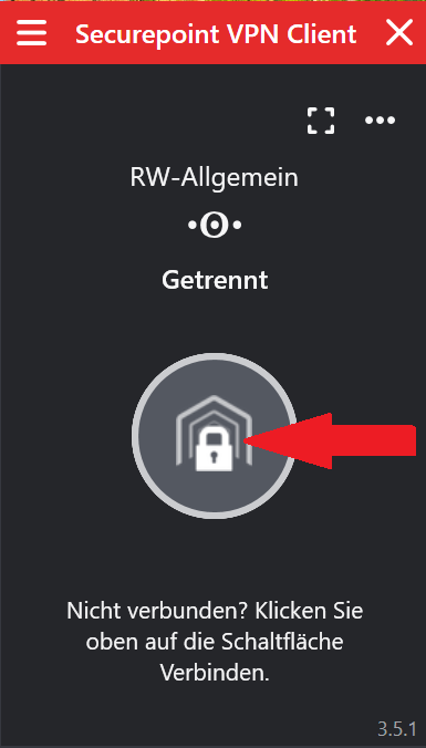 Klicken Sie auf die Schaltfläche um die VPN Verbindung herzustellen.